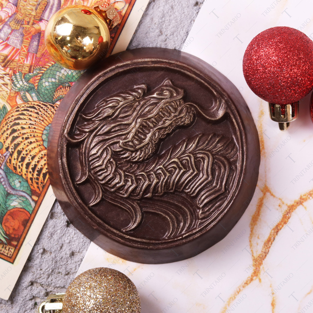 • Символ года Китайский дракон из темного бельгийского шоколада с позолотой, ручная работа 50 г