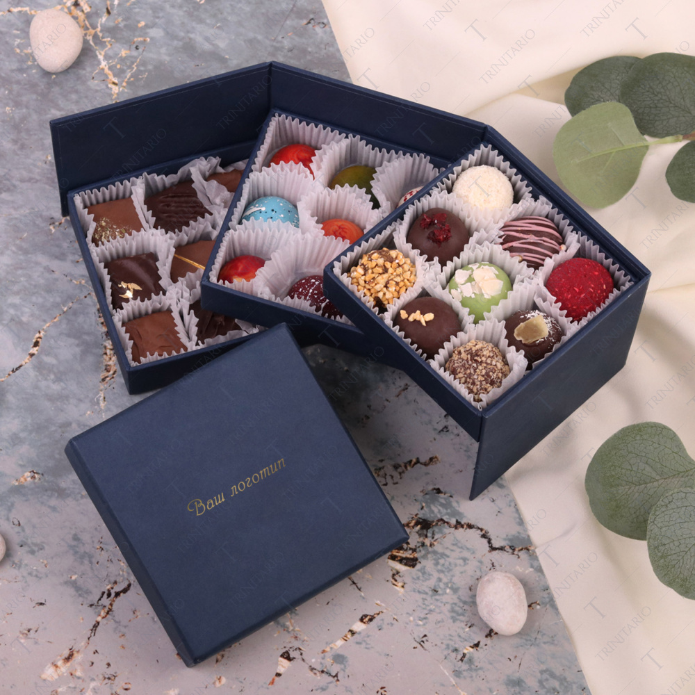 • Коробка из кашированного картона 3-х ярусная, синяя