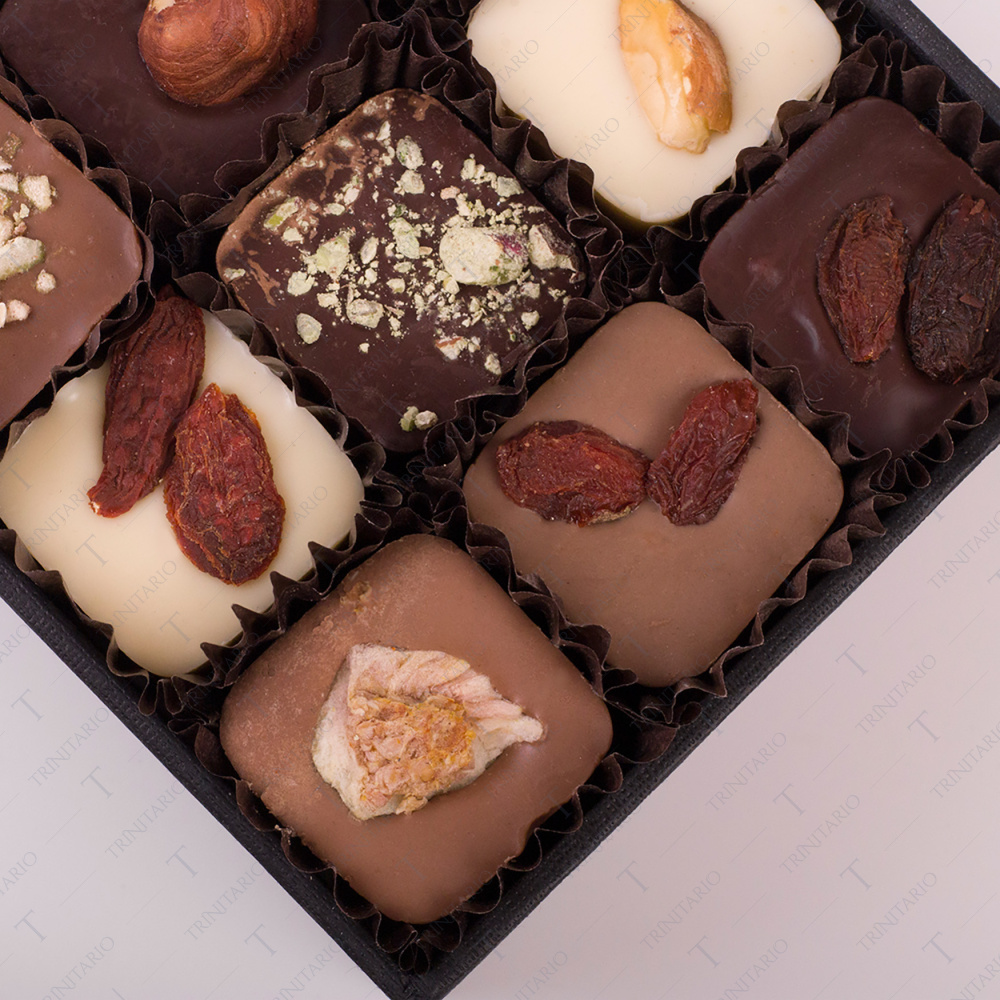 • Квадратные шоколадные конфеты в ассортименте, ручная работа 8 г 9 шт