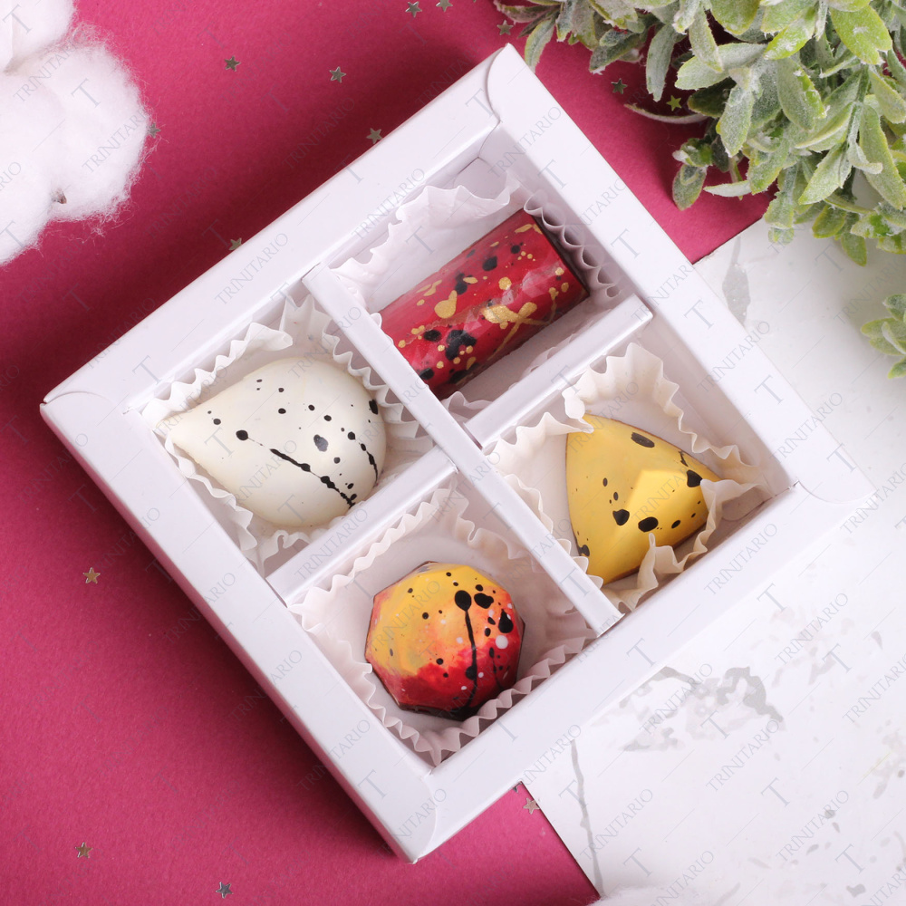 • Корпусные конфеты ручной работы из бельгийского молочного шоколада с начинкой в ассортименте 10 г 4 шт