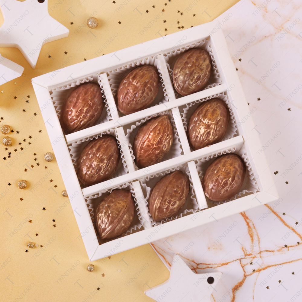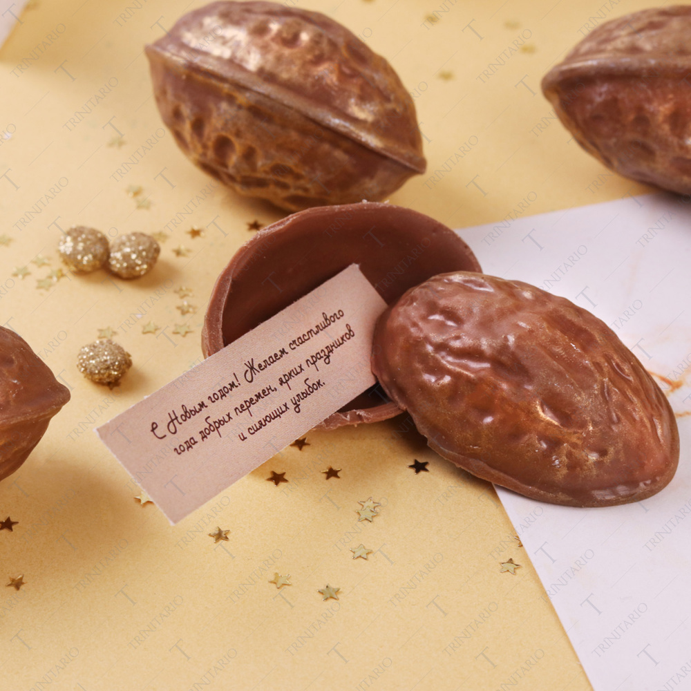 • Орешки из молочного шоколада с позолотой с печатными посланиями внутри, ручная работа 7 г 9 шт